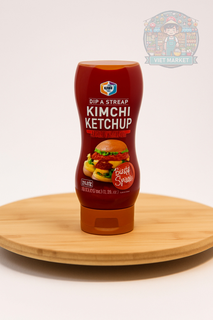 Zloženie: paradajkový kečup 40%(voda, paradajkové pyré, cukor, ocot, soľ), kimchi omáčka 20%(čínska kapusta, reďkovka, soľ, čili prášok, cukor, jarná cibuľka, cesnak, cibuľa, zázvor, voda), voda, omáčka(ocot, čili prášok), cukor, paradajkový pretlak 4,8%, kukuričný sirup s vysokým obsahom fruktózy, papriková pasta, hruškové pyré, cesnak, kukuričný škrob, jablkové pyré, soľ, drožďový extrakt, cibuľový prášok, čili prášok, farbivo:E160c, zahusťovadlo:E415, zvýrazňovač chutí:E635, čili extrakt