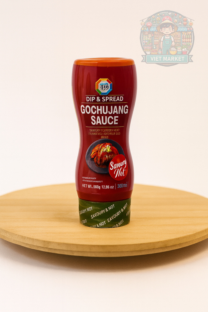 Zloženie: červená čili pasta 50%(kukuričný sirup, hnedá ryža, voda, soľ, sójové bôby, etanol, chili prášok, lepkavá hnedá ryžová múka, koji), voda, cukor, kukuričný škrob, soľ, cesnak, etanol, ocot(z jačmeňa), cibuľa, drožďový extrakt, regulátor kyslosti:E270, čili prášok, kukuričný škrob, čierne korenie, farbivo:E160c, zahusťovadlo:E415, čili extrakt