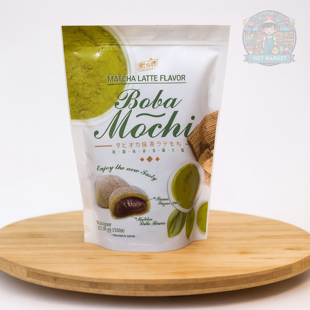 YUKI & LOVE Mochi ryžové koláčiky s príchuťou matcha latte s tapiokovými guličkami 120g