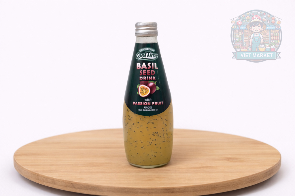 COOL TIME Nealkoholický nesýtený nápoj s bazalkovými semienkami s príchuťou marakuja 290ml