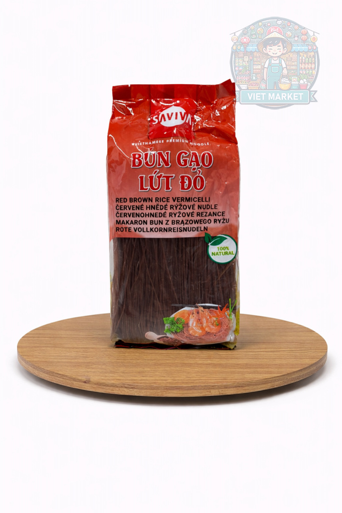 SAVIVA Červeno-hnedé tenké ryžové rezance 400g
