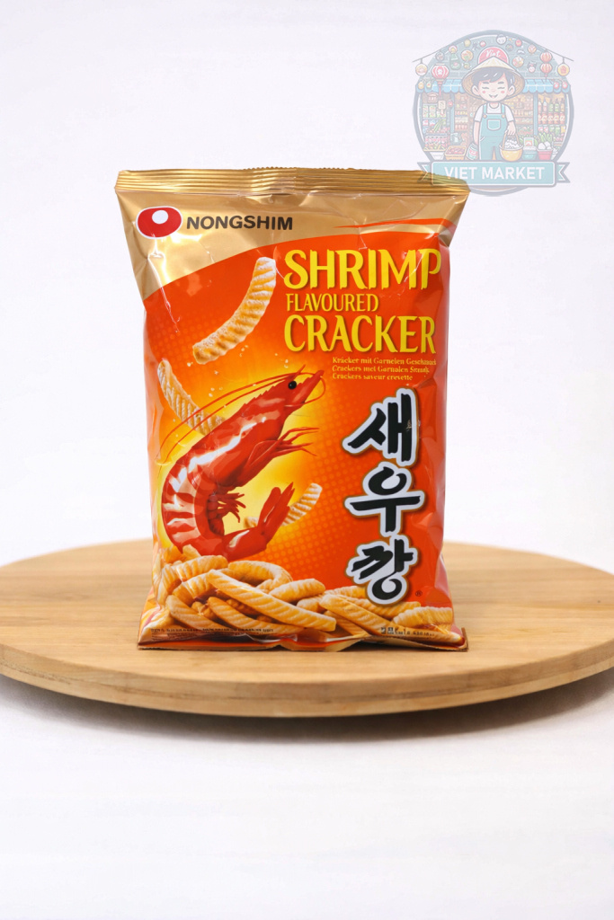 Zloženie: pšeničná múka, krevety 8,5%, palmový olej, tapiokový škrob, olej z ryžových otrúb, cukor, soľ, krevetové korenie v prášku (výťažok, hydrolyzovaná sójová bielkovina), cibuľový prášok, cesnakový prášok, regulátor kyslosti E1404, sójová bielkovina